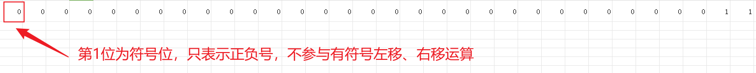 无符号右移运算符在向右移动时符号位和其他数字都参与移动。此时空缺位使用0来补齐即可。